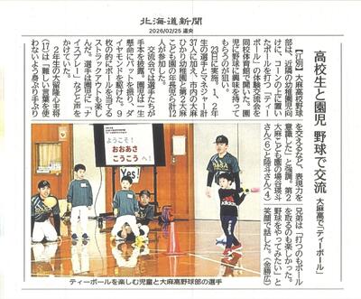 学校の授業での学びと、グランドで身につけた力を活かし、元気いっぱいの子どもたちと、とても楽しい時間を過ごすことができました。北海道新聞が取材に訪れ、その様子が新聞に掲載されました。