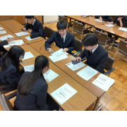 本校では校則見直しについて継続的に検討しているところですが、今回も生徒会役員の生徒と生徒指導担当教員で本校校則の課題について協議を行いました。予定時間を大きく超過したにもかかわらず活発な意見交流が行われ、課題解決のための方策や校則の意義など多岐にわたり議論することができました。この協議をもとに校則見直しをさらに進めていく予定です。