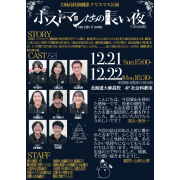 12月21日(日)、22日(月)と社会科教室でクリスマス公演を行いました。タイトルは「ポストマンたちの長い夜」という作品で、クリスマスの夜に、小学生の女の子の願いを郵便局員たちが叶えようと奮闘する1時間の物語です。10月末より2ヶ月準備してきました。いろいろ大変なこともありましたが、保護者等、たくさん来場していただき、いい公演になったと思います。今後も、心に届くお芝居を作っていきたいと思います。